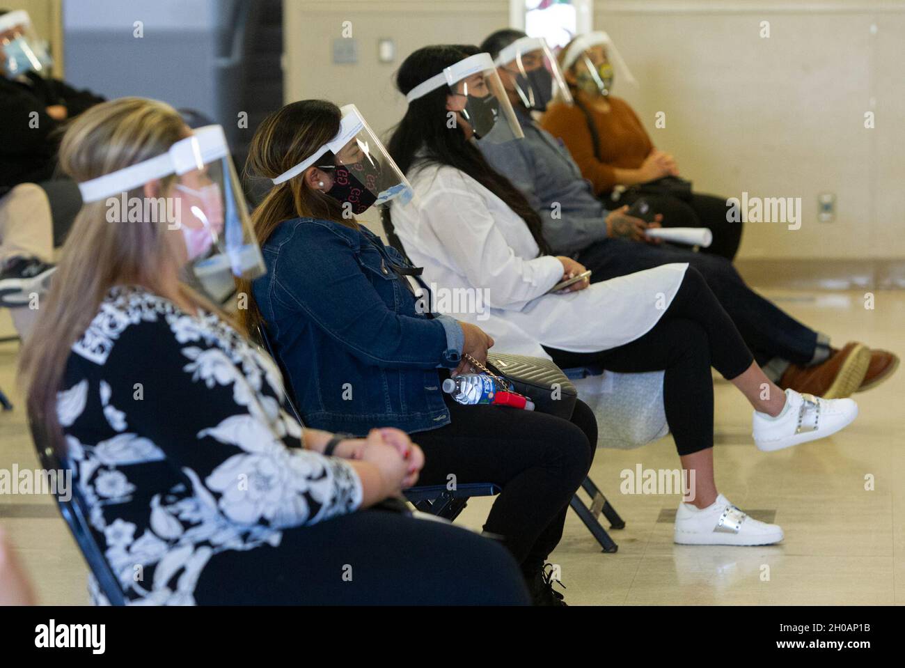 Carlos Ortiz translates an orientation briefing into Spanish for parents of some Sunburst Youth Challenge Academy Class 27 candidates Jan. 4427 Saratoga Avenue Building 25. Nichole pichardo november 2 2020.